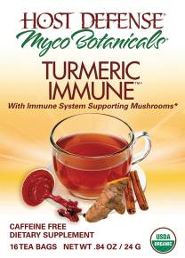 Host Defense MycoBotanicals Turmeric Immune tea is a spicy-sweet blend of reishi mushroom and turmeric, ginger, and other helpful herbs brewed to support the adrenal system and immune health.§