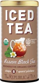 The Republic of Tea Iced Assam Black Tea is bold, brisk, and naturally energizing. Premium leaves brew smooth, refreshing flavor—perfect for a chilled pick-me-up. Regenerative Organic Certified.
