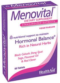 HealthAid America Menovital provides herbal support during the menopausal period, promotes hormone balance, and helps reduce hot flashes, fatigue, and irritability.