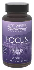 Host Defense Mushrooms Mycobenefits Focus Mushroom Mycelium Complex supports attention and concentration with B vitamins, lion’s mane, reishi, and cordyceps.