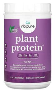 NBPure Plant Protein+ is a vanilla vegan protein powder made from North American grown and processed yellow peas, with flaxseed and chia for fiber, antioxidants, and omega 3s.