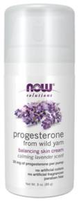 NOW Solutions Progesterone From Wild Yam Balancing Skin Cream contains 20 milligrams of progesterone per pump of absorbable cream with a relaxing lavender scent.