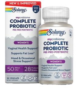 Solaray Mycrobiome Complete Probiotic Women’s delivers prebiotics, probiotics, and postbiotics with specialized benefits for women in one capsule.