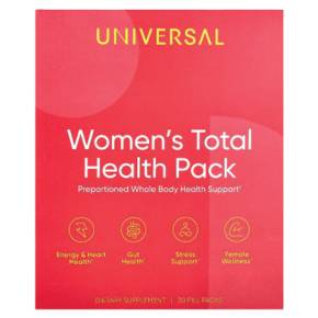 Universal Nutrition Women’s Total Health Pack goes beyond the basics to support heart, gut, and stress response. The vitamin pack also supports urinary tract health and hormone balance.