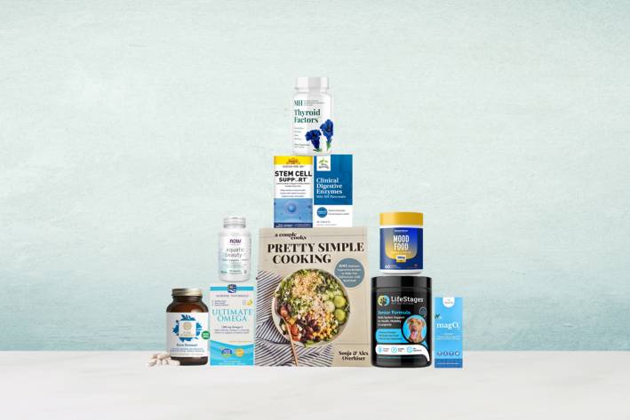 a variety of all-natural supplements and a cookbook