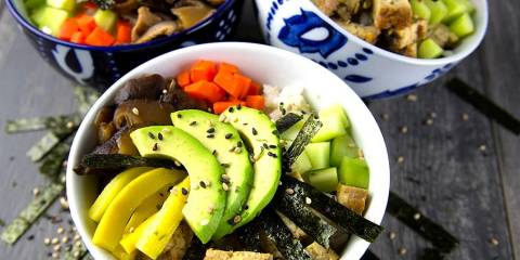 1. Place sautéed kale in a wide, deep bowl. Sprinkle with beans, cooked grains, tomatoes, and sweet potato.