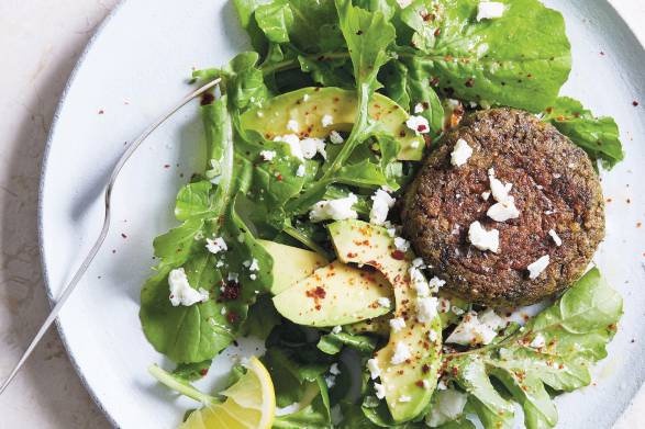 - Line a baking sheet with unbleached parchment paper. In a food processor, combine lentils and rice, chard, quinoa flakes, lemon juice, eggs, and& 3⁄4 teaspoon of salt. Pulse until just combined. Divide mixture into 8 1⁄2 cup (4 oz) portions and shape them into 1-inch-thick patties (about 3 inches wide), placing them on prepared baking sheet as you go.