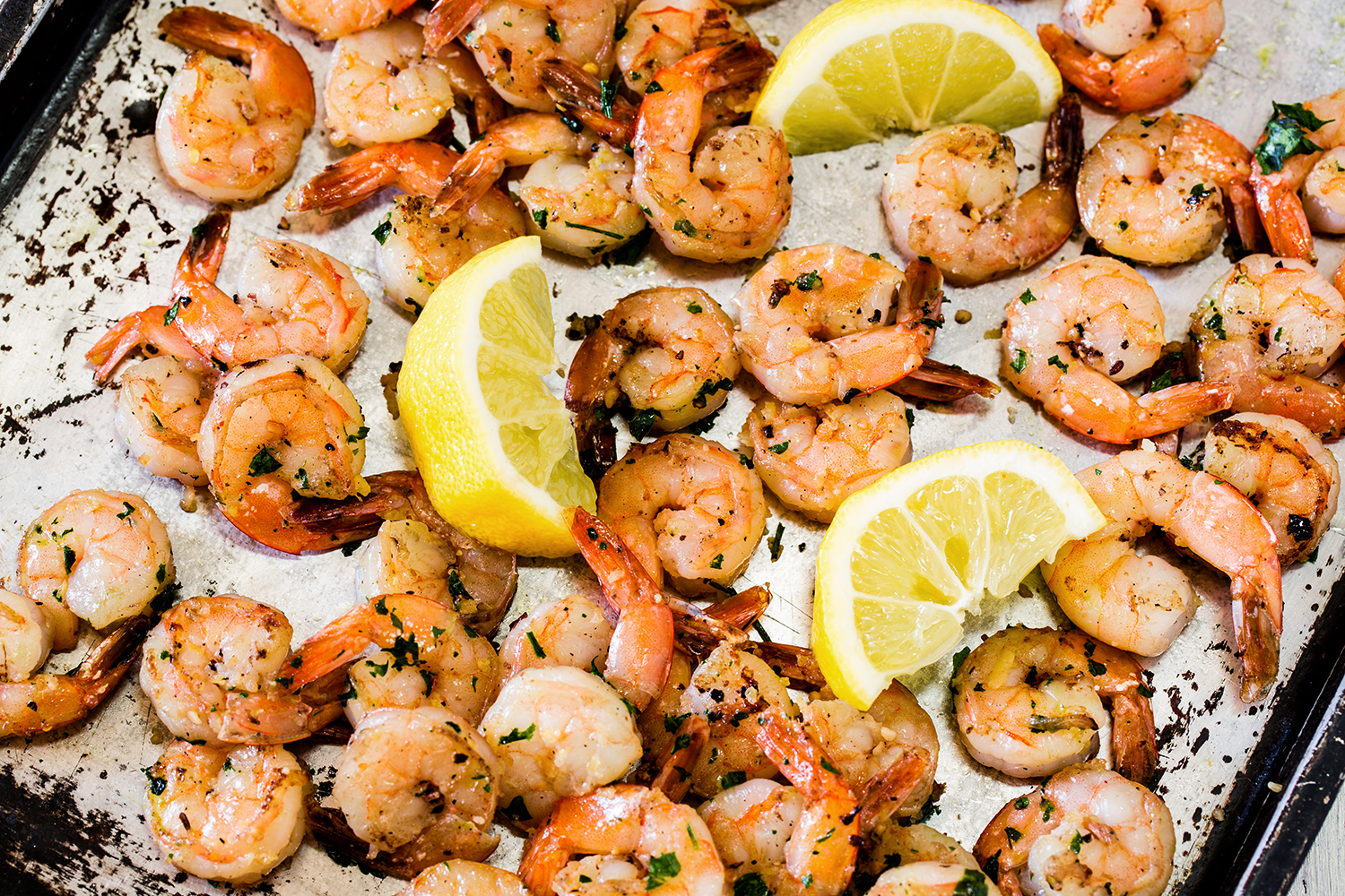 - Garnish with parsley and serve with reserved lemon wedges to squeeze over shrimp.